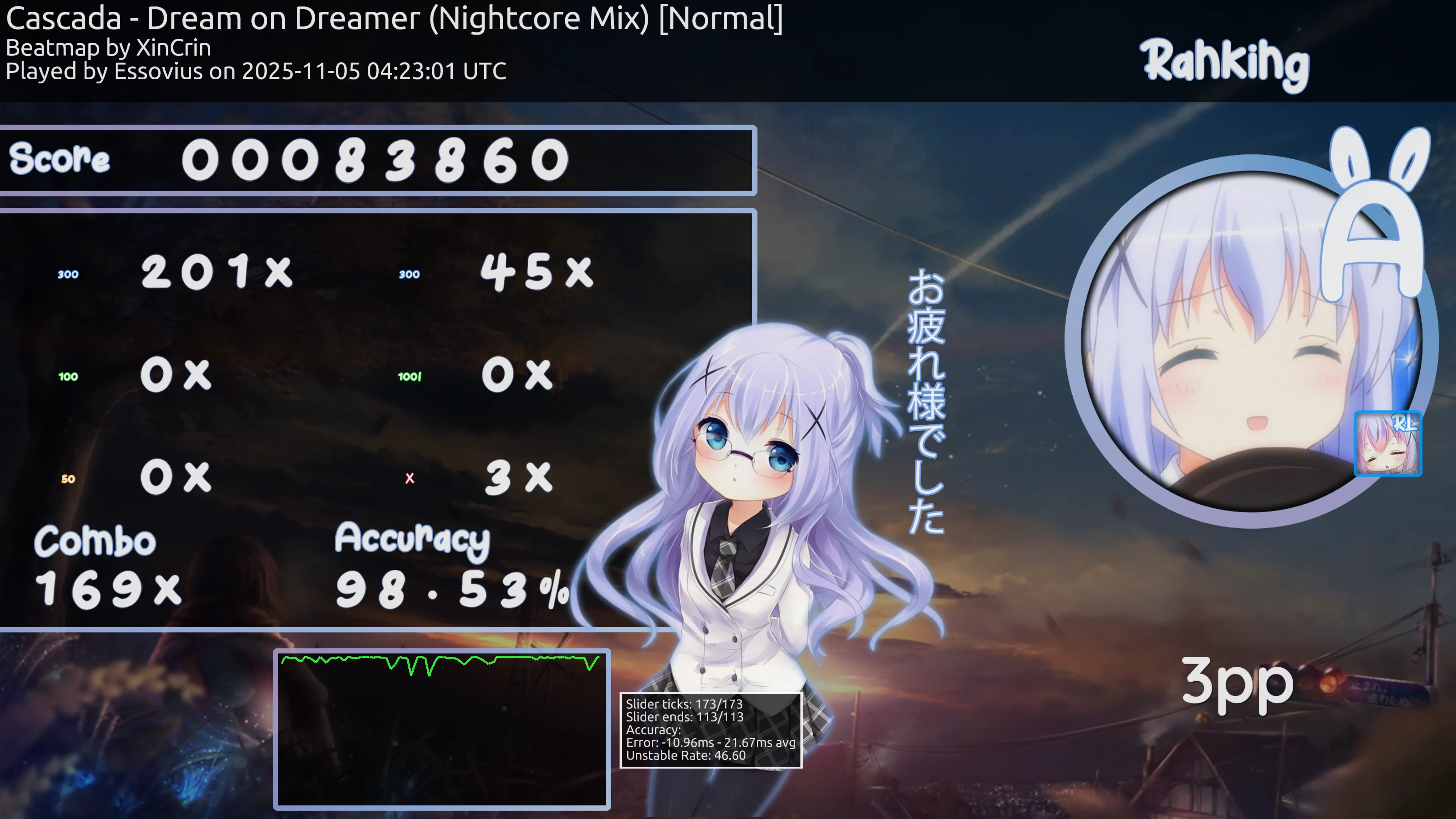 Chino Kafuu CREATED BY ArchieA7 MODES Standard Catch 71.538 VIEWS 20.915 DOWNLOADS 71.71 MB FILE SIZE Download This Skin Misses and Jumps Slider Spinner Result Screen Section Pass Section Fail Date added Aug 19, 2019 10:30 PM Creator ArchieA7 Related skins - # Narukiko - Hisakawa Nagi (久川 凪) - 110.727 views • 42.700 downloads Kaoruko Moeta 69.533 views • 21.748 downloads Hitori Bocchi 59.730 views • 13.455 downloads